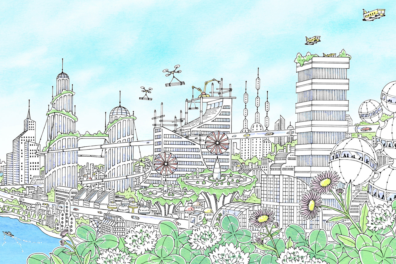 ご要望:温かく優しい近未来が想像できるようなイラスト
